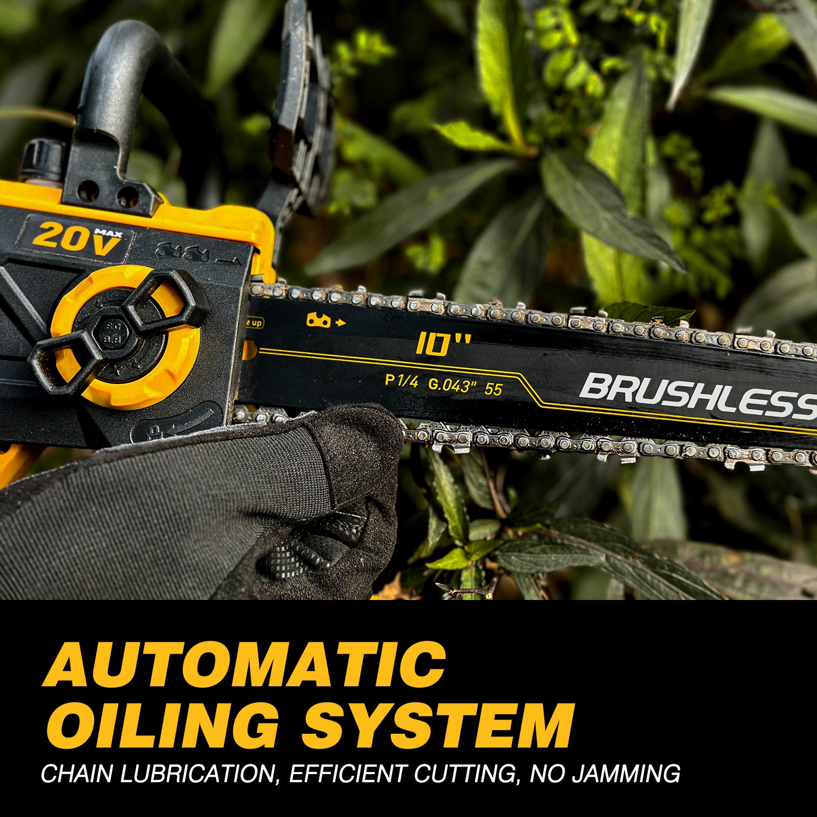 True Brushless Motor: Our 10-inch cordless 2 IN 1 pole saw is powered by a high-efficiency second-generation brushless motor for powerful performance and reliable operation. Higher efficiency, lower energy consumption, stable and non-decaying power, and longer service life!